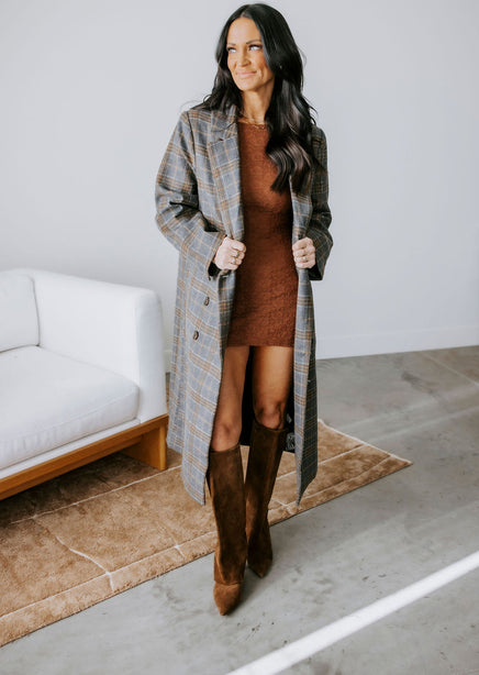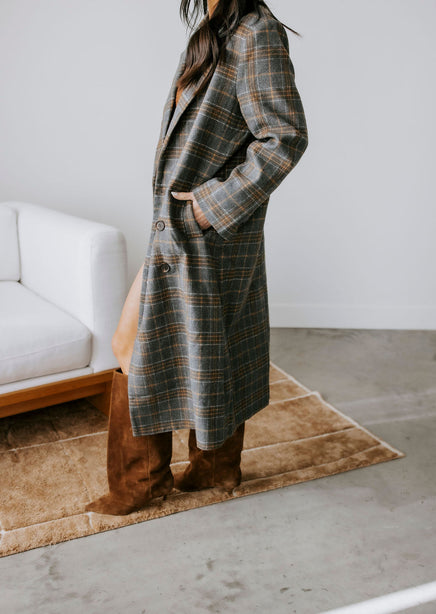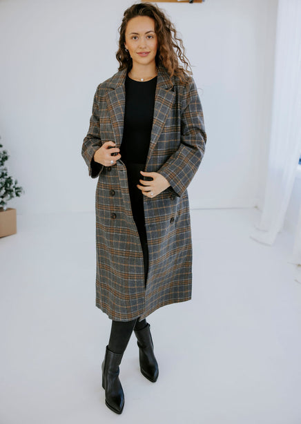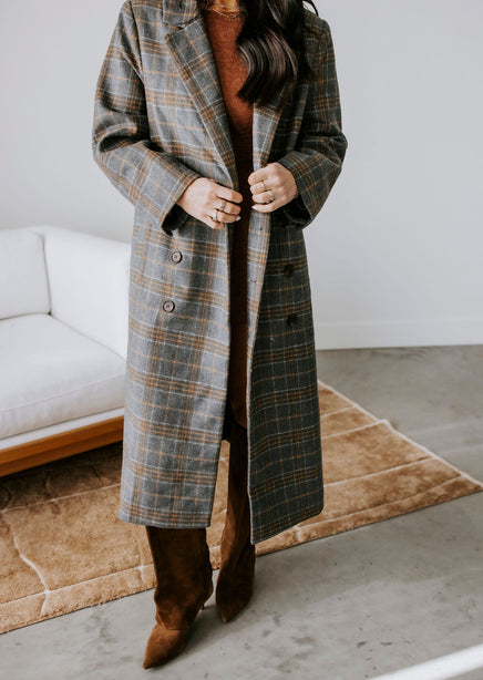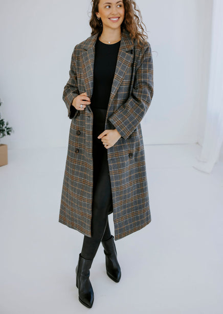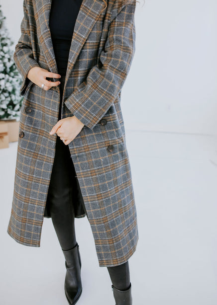 Alan Plaid Double Breasted Long Coat