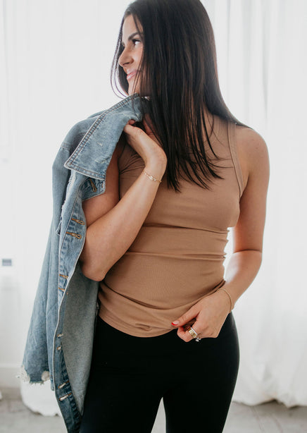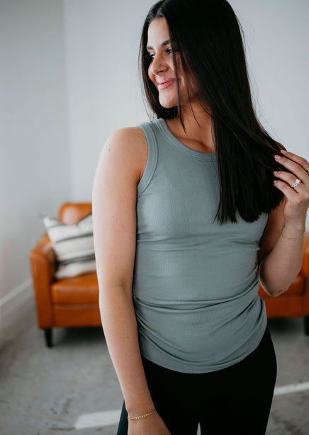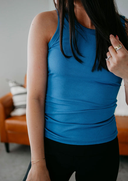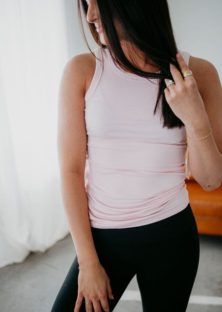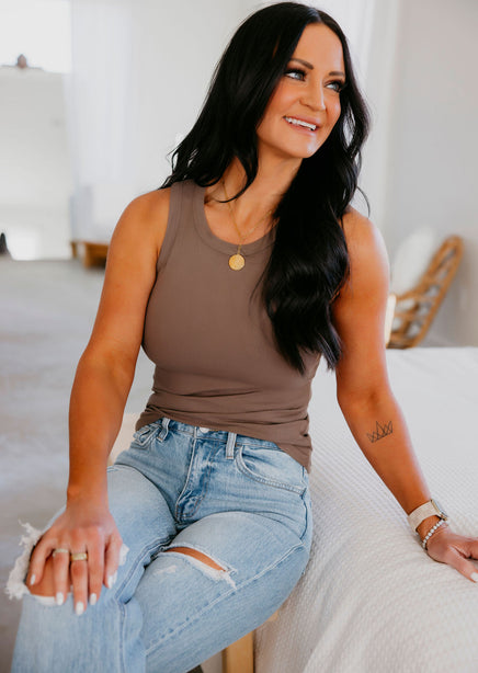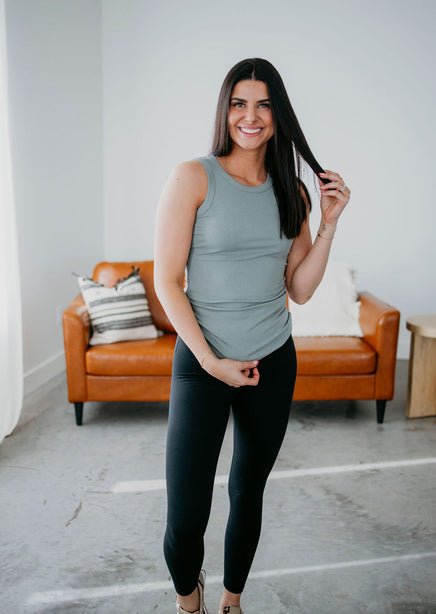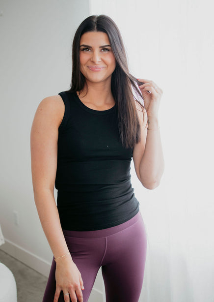 This super soft tank deserves all the hype! Crafted from a rayon-spandex blend with four-way stretch for a comfy and always-flattering fit. Micro-ribbed fabric shapes the sleeveless design with classic tank detailing. Comes in a variety of colors for all your athleisure and layering needs! Madison and Laurie are wearing a size small.