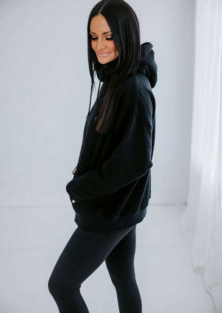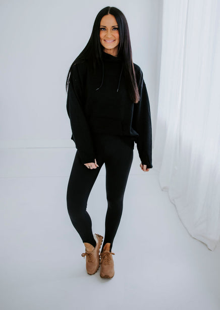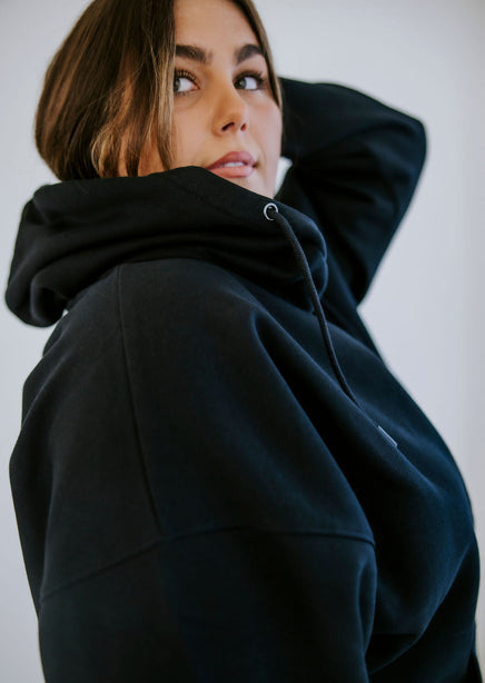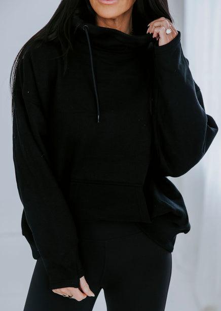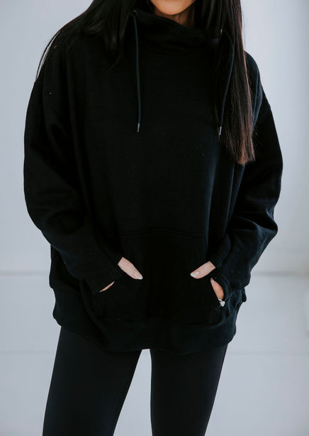 Comfort meets style in this new Kaylee Slagus x Lily and Lottie hoodie. A stylish twist on a classic sweatshirt with thumb holes and a mock neck collar line. Dress it up or down in two shades- black and our very famous dragonfruit.