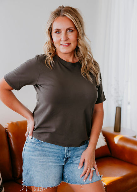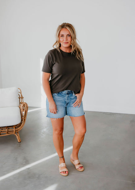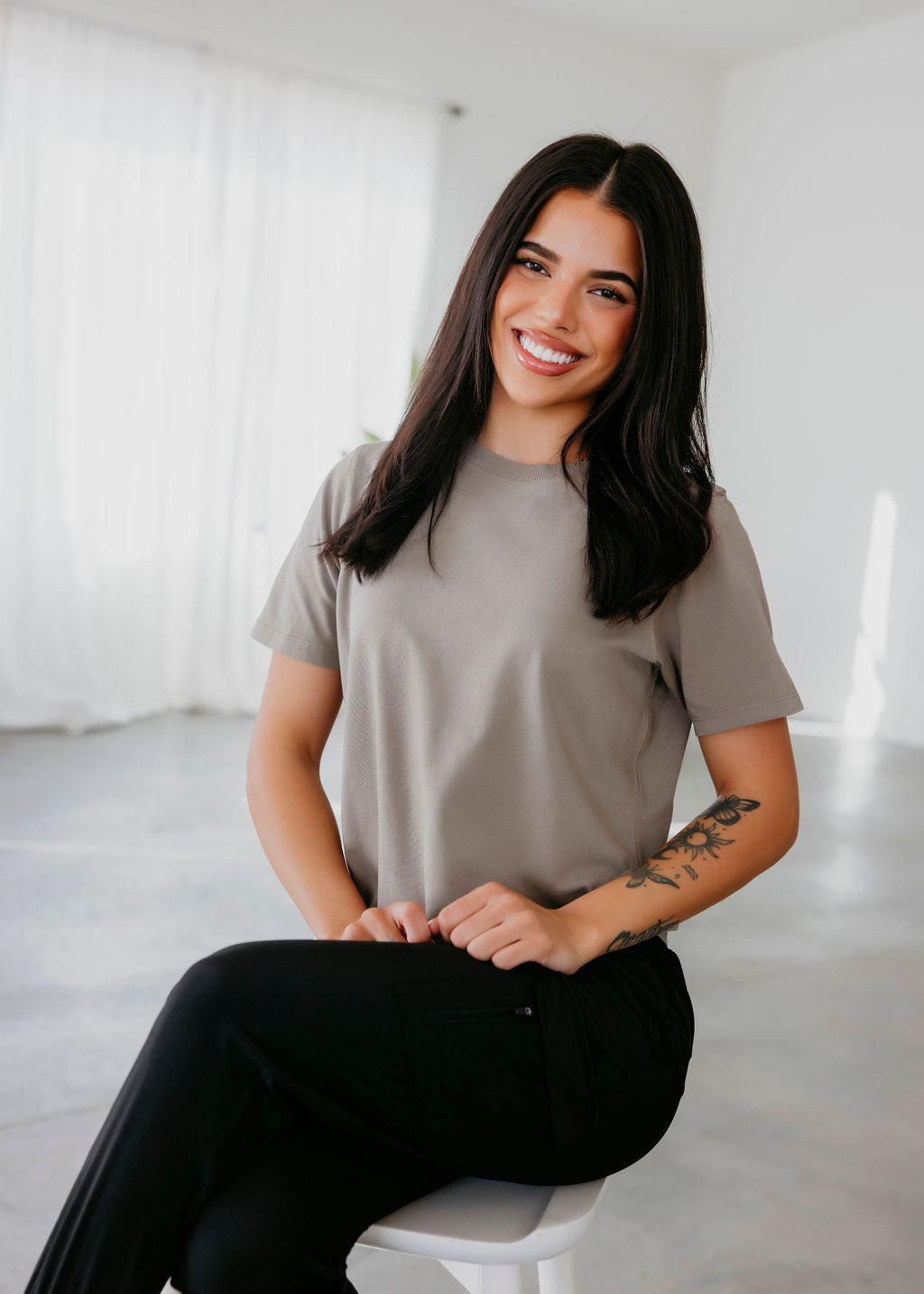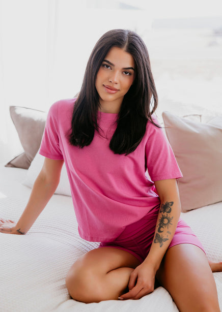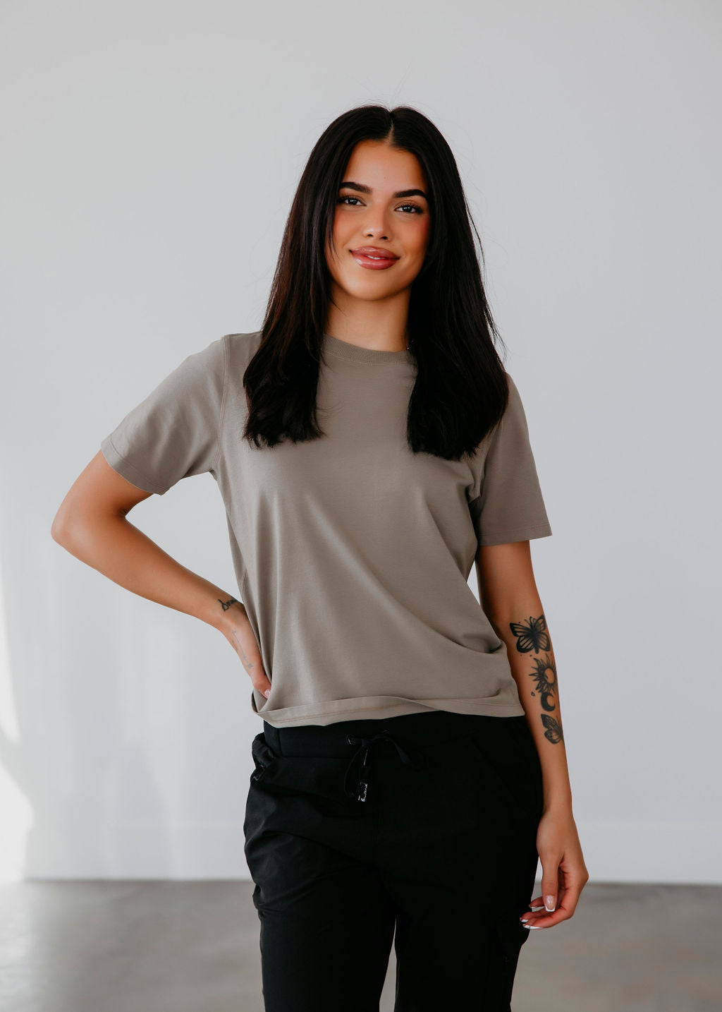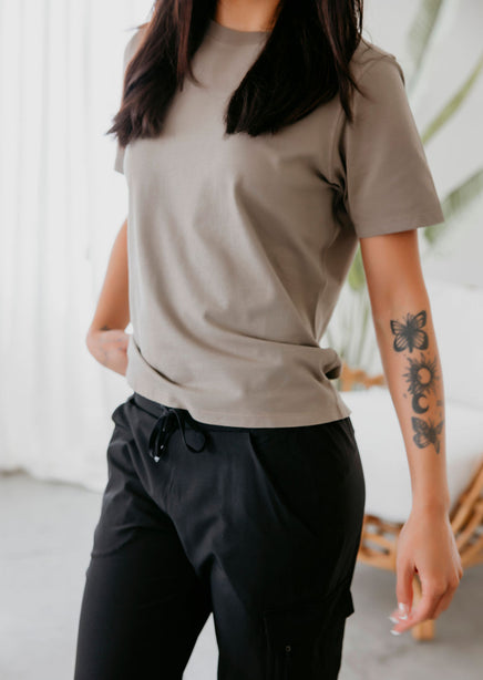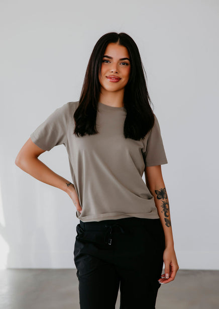 A tried and true classic. This simple tee is made with cotton that is pigment dyed for a rich color and features a boxy fit with a ribbed neckline.
