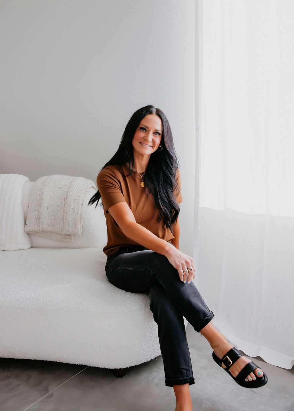 Laurie, Kara, and Serenity are wearing size smalls. Jen is wearing a size large.