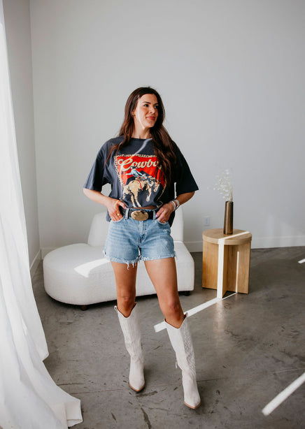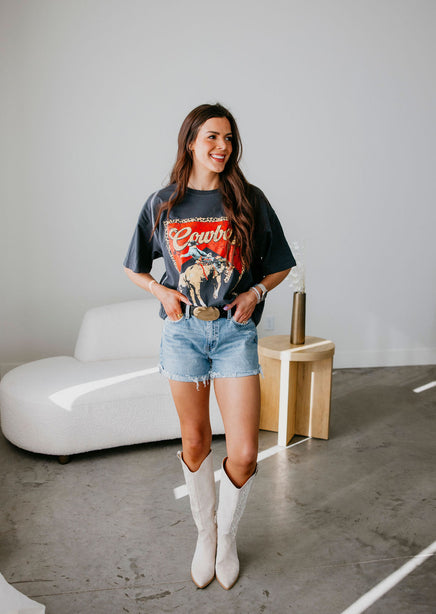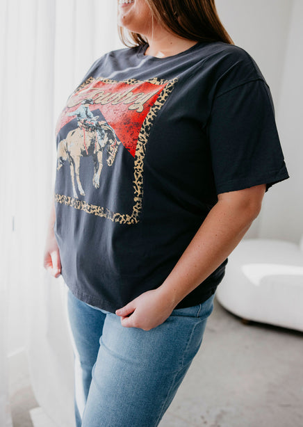 Kara is wearing a size S/M. This shirts fits oversized. Kaylee is wearing a size M-L.