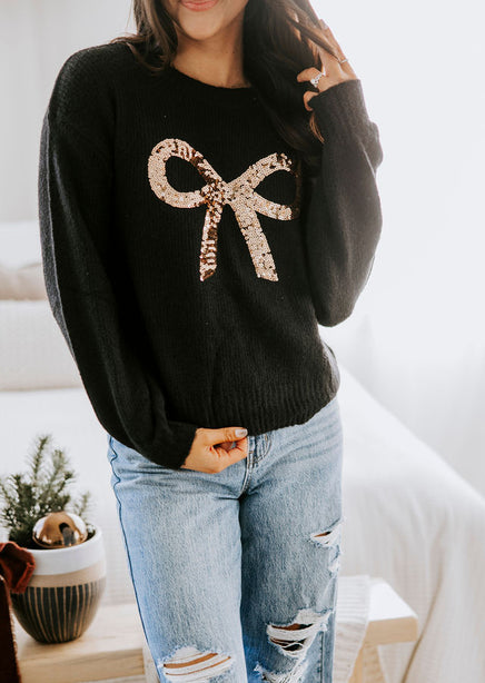 Dazzling Sequin Bow Sweater