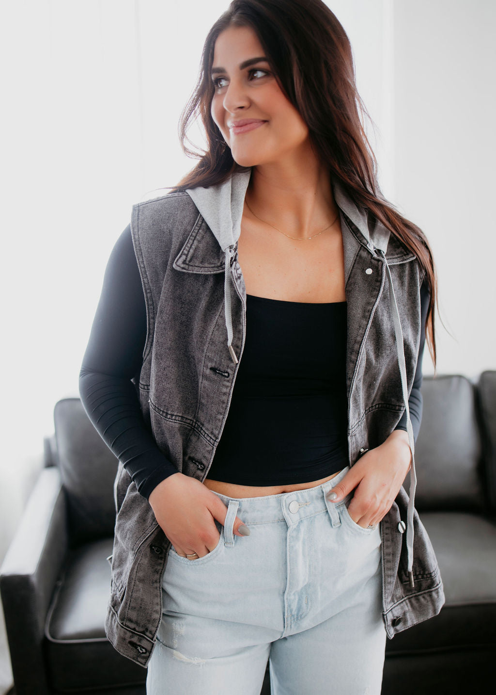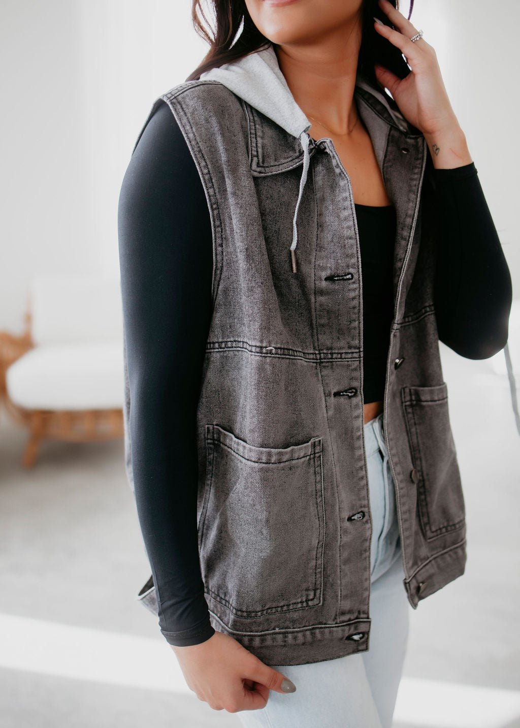 Doni Hooded Denim Vest