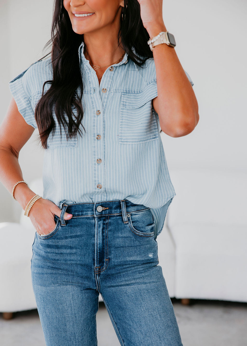 Ellie Striped Button Down Top