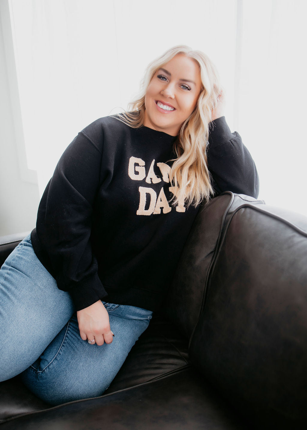 Madison is wearing a size small. Loghin is wearing a size XL.