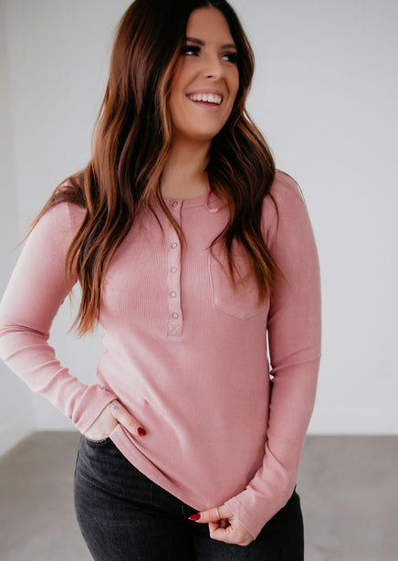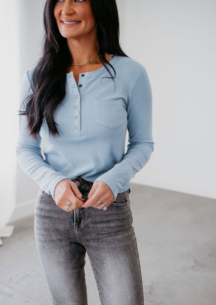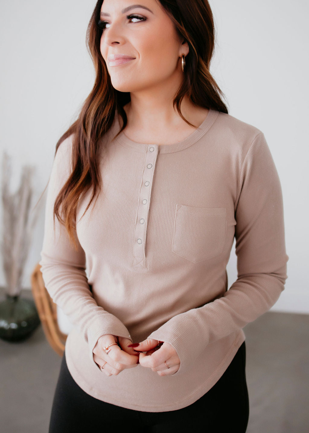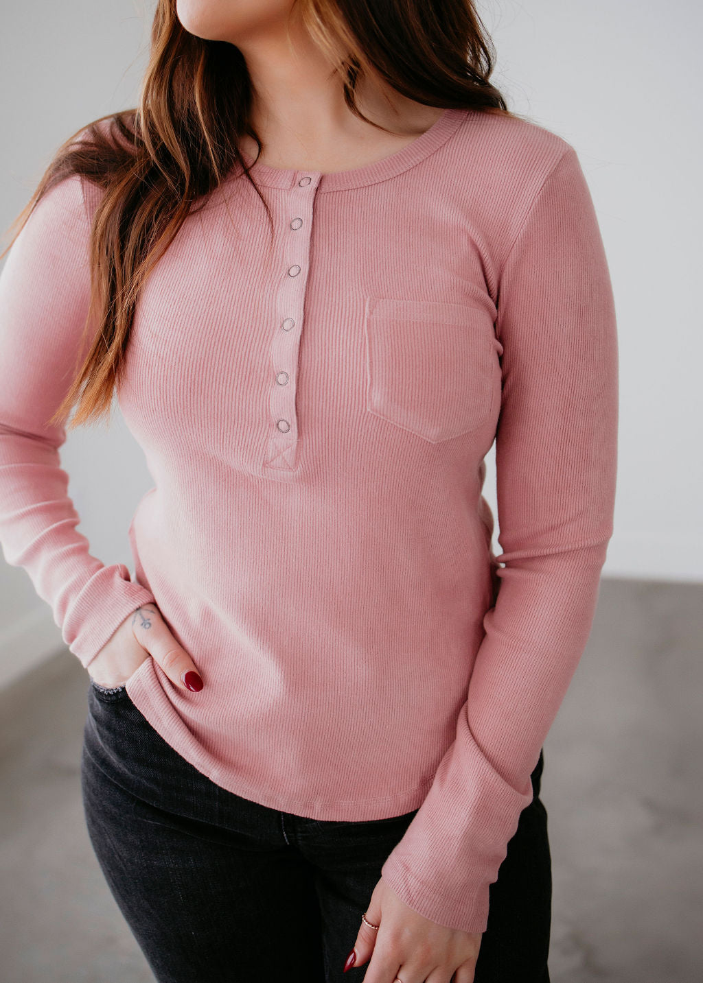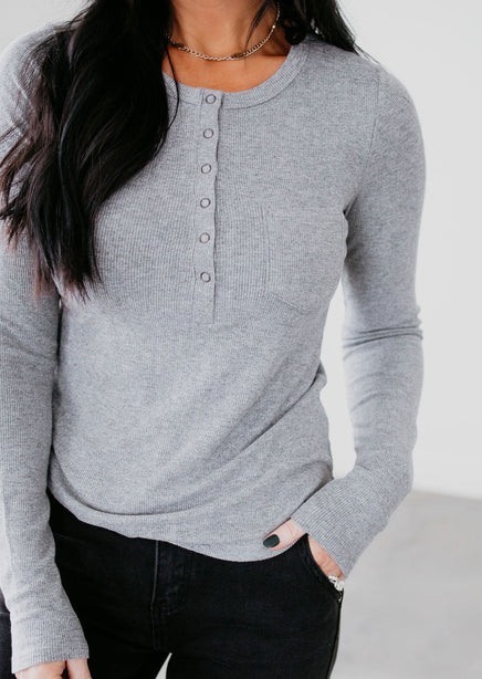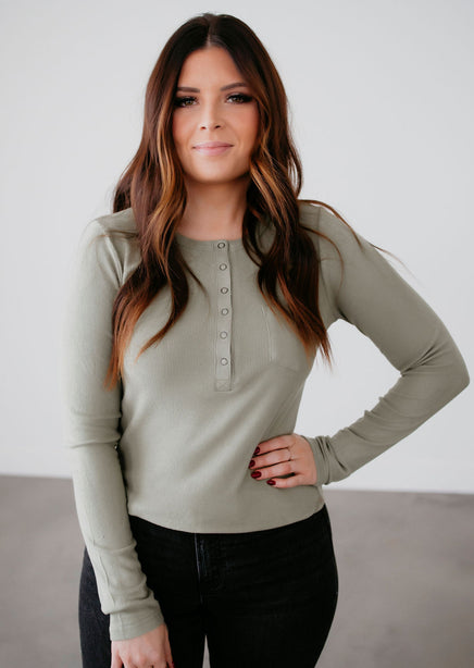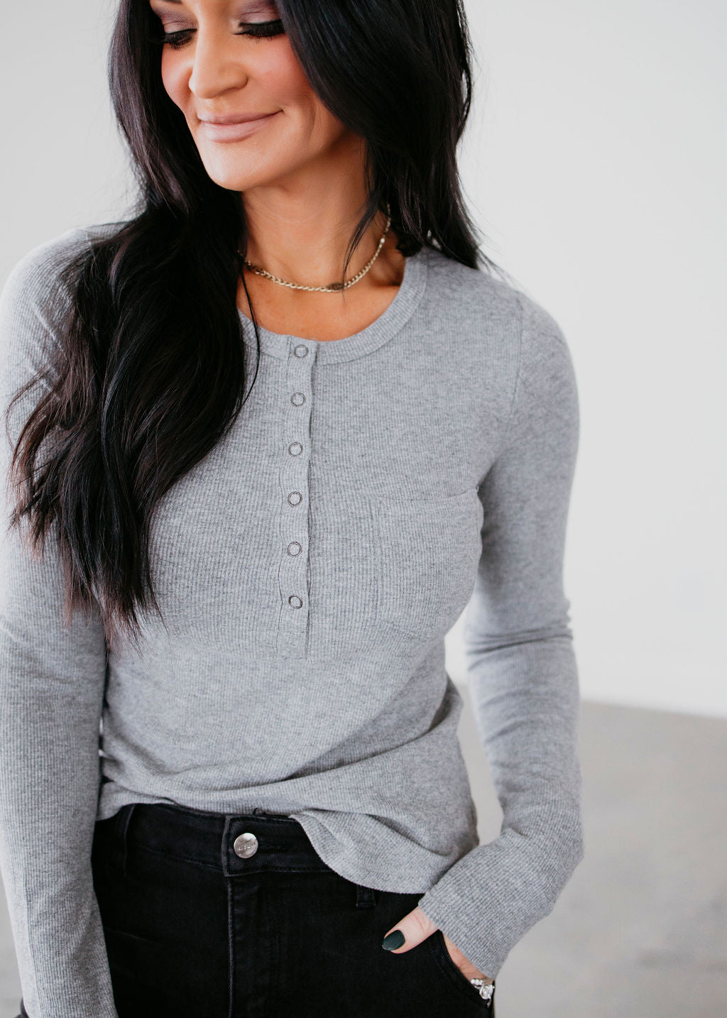 From commuting to work, running errands, or traveling the world this henley top will keep you going all day long. You'll stand out from the crowd in this lightly brushed fabric that gives a unique and modern twist to your wardrobe. Features a classic crew neckline, long sleeves, and a slightly fitted silhouette. Complete with functional snap buttons at the neckline. Laurie andBrittany are wearing size smalls.