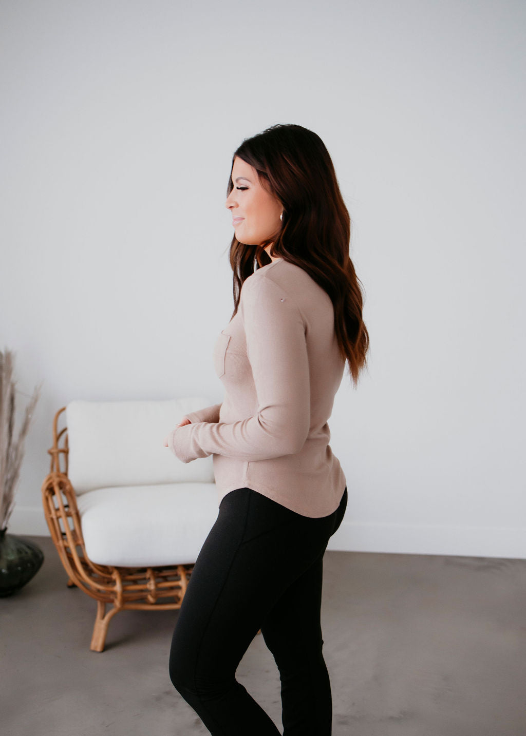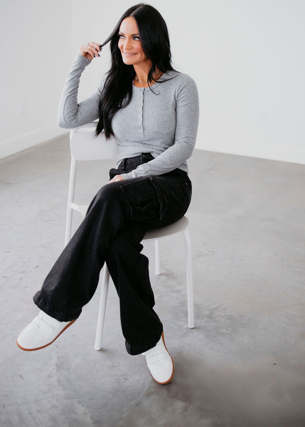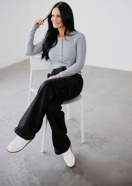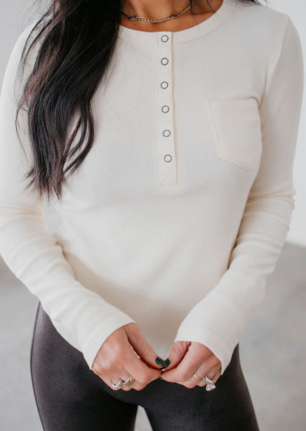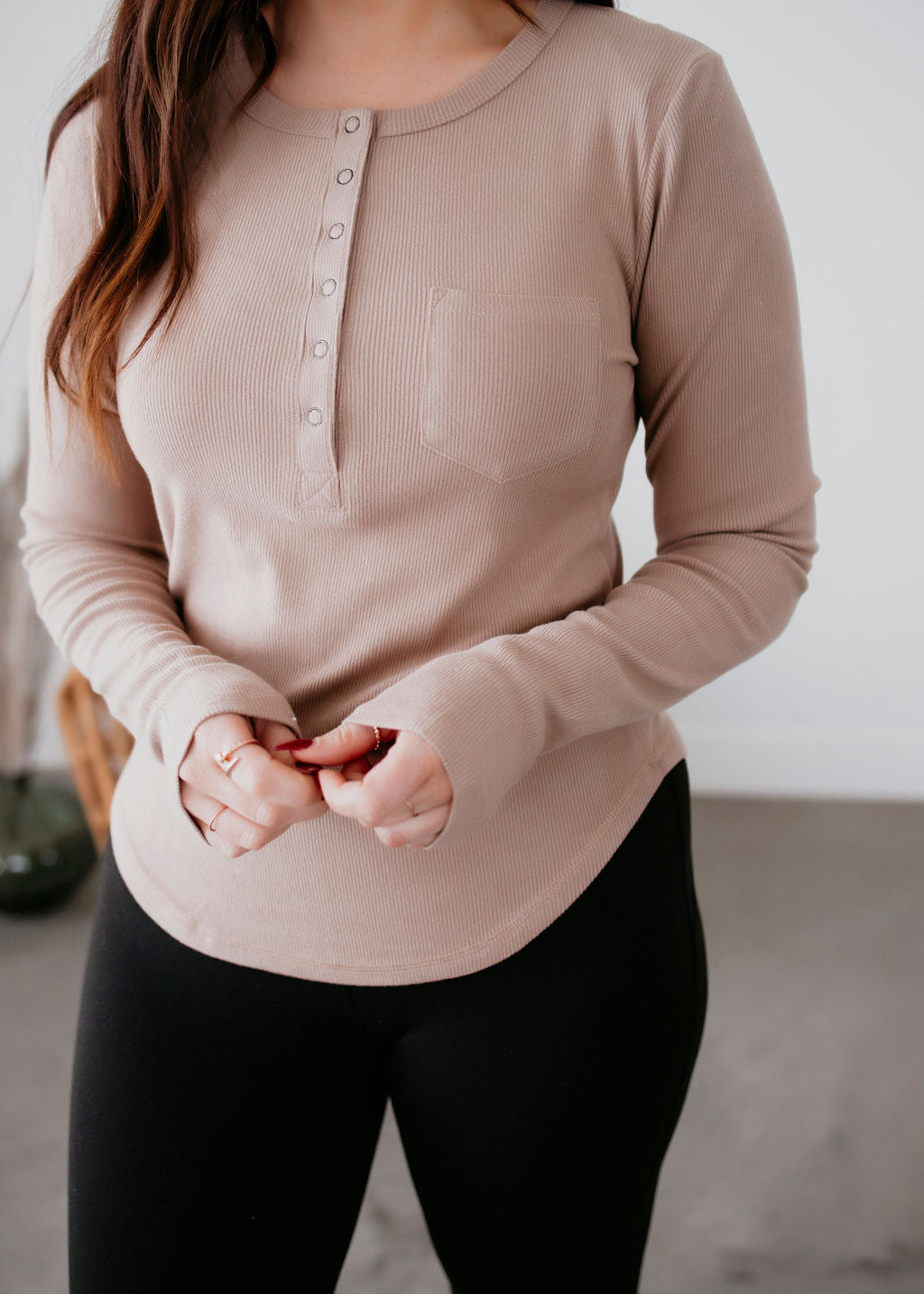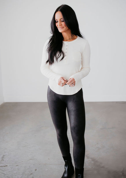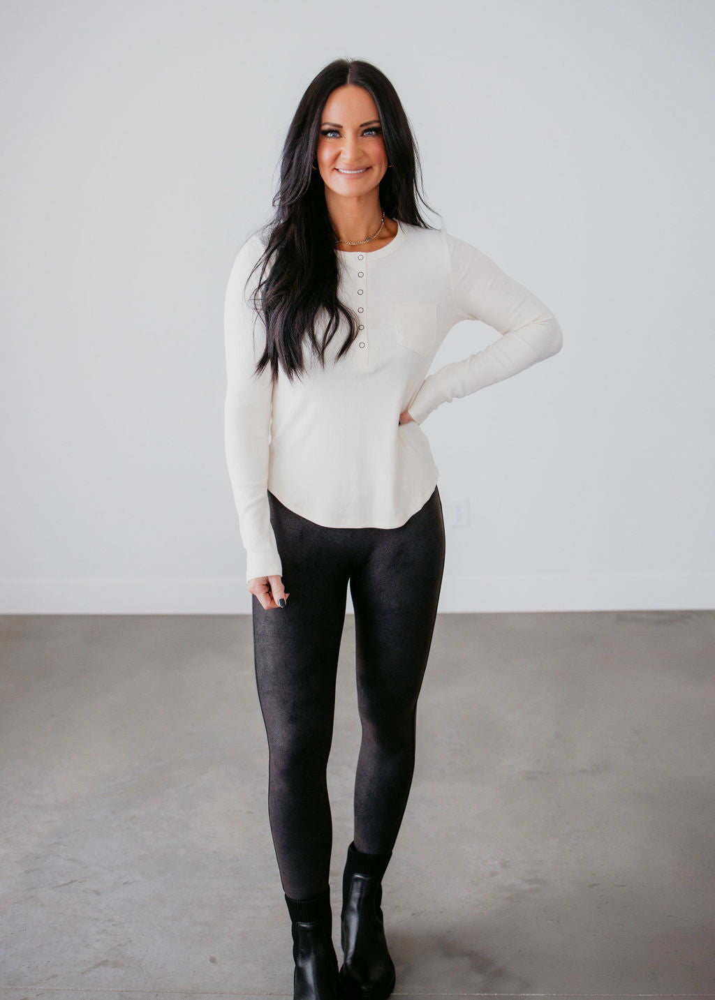 From commuting to work, running errands, or traveling the world this henley top will keep you going all day long. You'll stand out from the crowd in this lightly brushed fabric that gives a unique and modern twist to your wardrobe. Features a classic crew neckline, long sleeves, and a slightly fitted silhouette. Complete with functional snap buttons at the neckline. Laurie andBrittany are wearing size smalls.