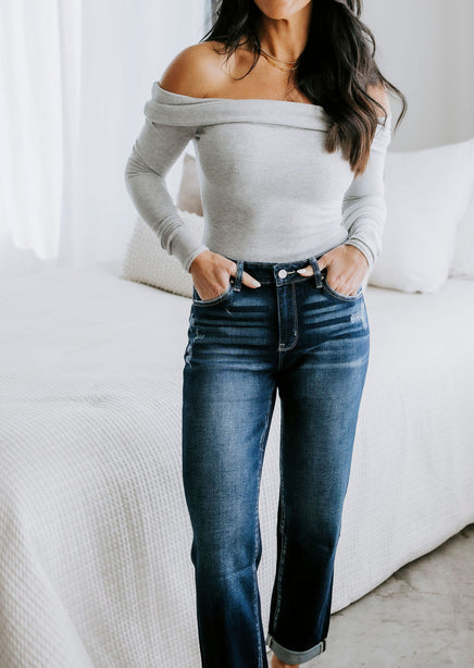 - Intentional light distressing & whiskering