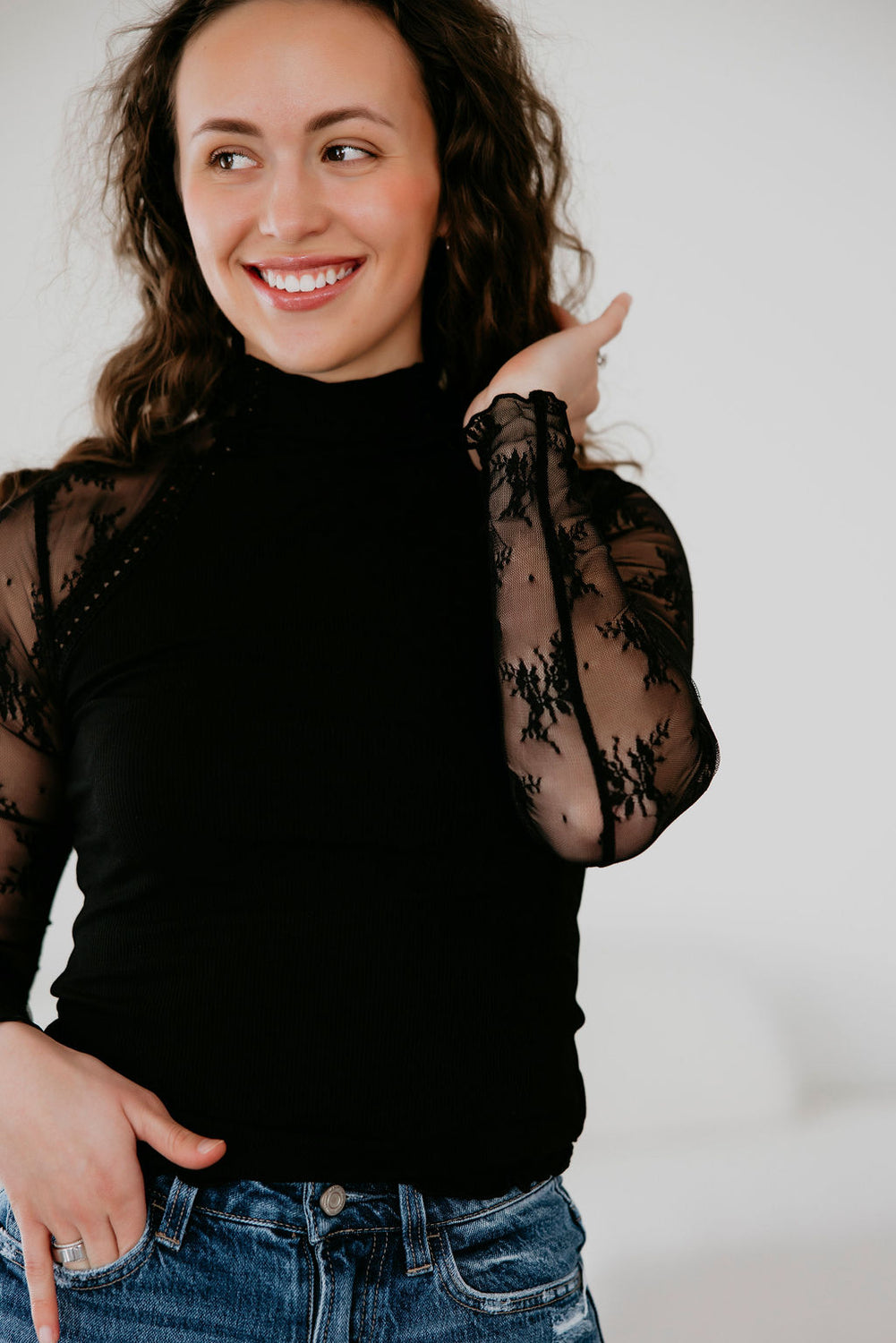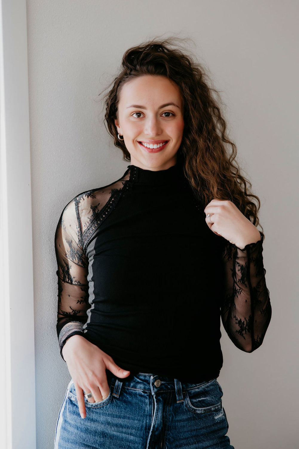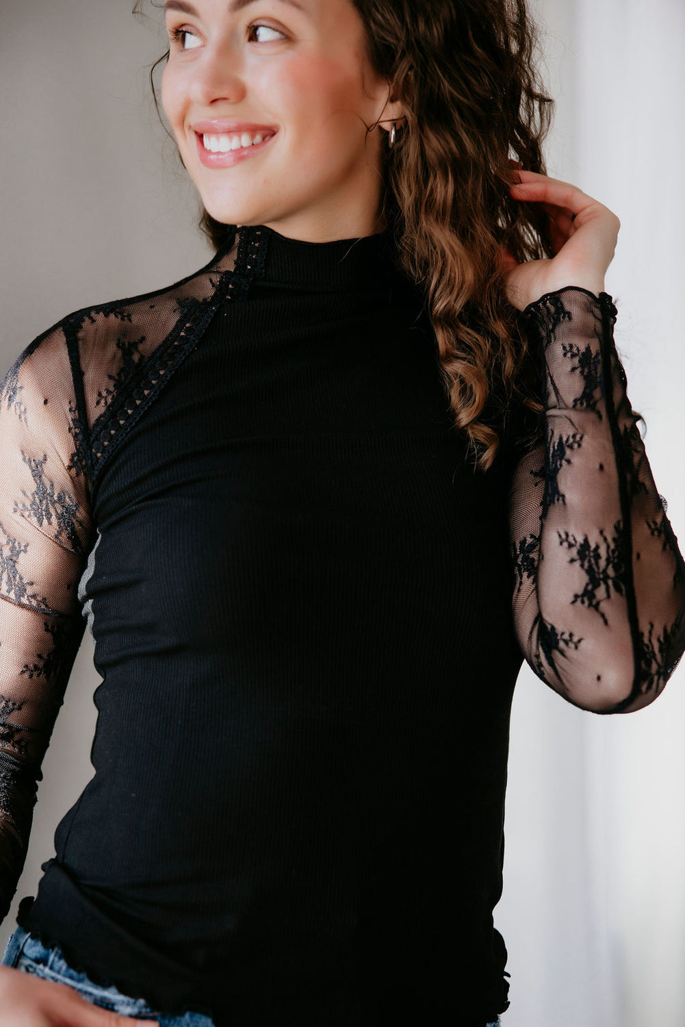 Kaia Mesh Sleeve Knit Top