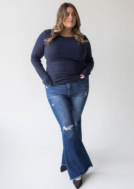 Upgrade your collection of basics with this soft long sleeve top! Once you put this on and see how wonderful it feels, you will want to get it in every color! Features a crew neck and ribbed long sleeves. Lightweight fabrication makes this top perfect for layering. Destined to be one of your go-to faves! Whether she's worn alone or layered under a slip dress this top is seriously cute! This beyond-basic tee starts with a stretchy knit construction, complete with ribbed accents at the sleeves and neckline. Always the perfect pick for your fave high-waisted jeans.
