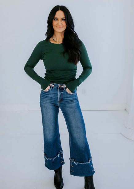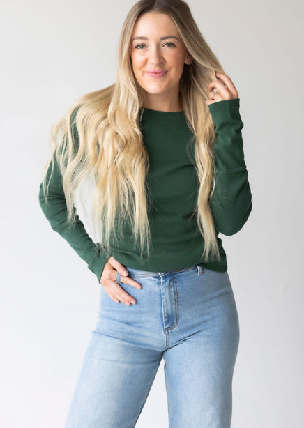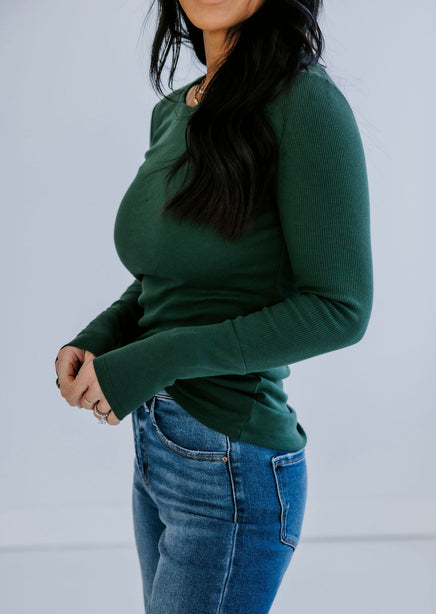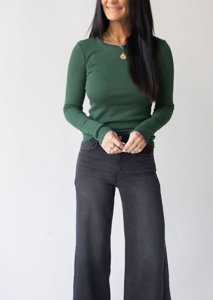 Upgrade your collection of basics with this soft long sleeve top! Once you put this on and see how wonderful it feels, you will want to get it in every color! Features a crew neck and ribbed long sleeves. Lightweight fabrication makes this top perfect for layering. Destined to be one of your go-to faves! Whether she's worn alone or layered under a slip dress this top is seriously cute! This beyond-basic tee starts with a stretchy knit construction, complete with ribbed accents at the sleeves and neckline. Always the perfect pick for your fave high-waisted jeans.