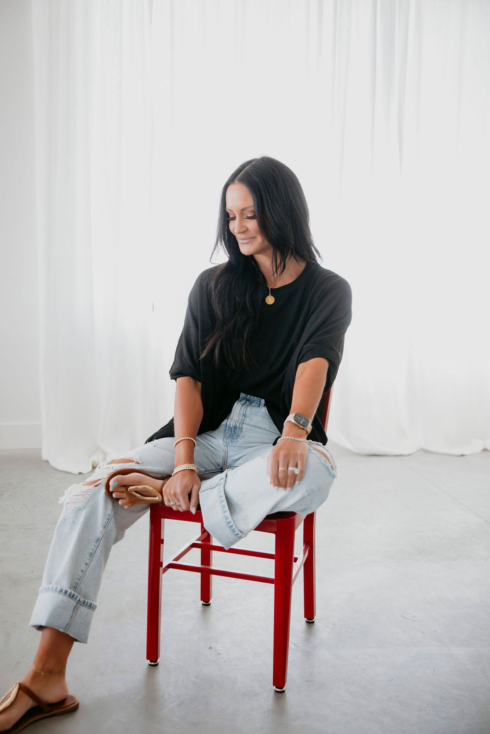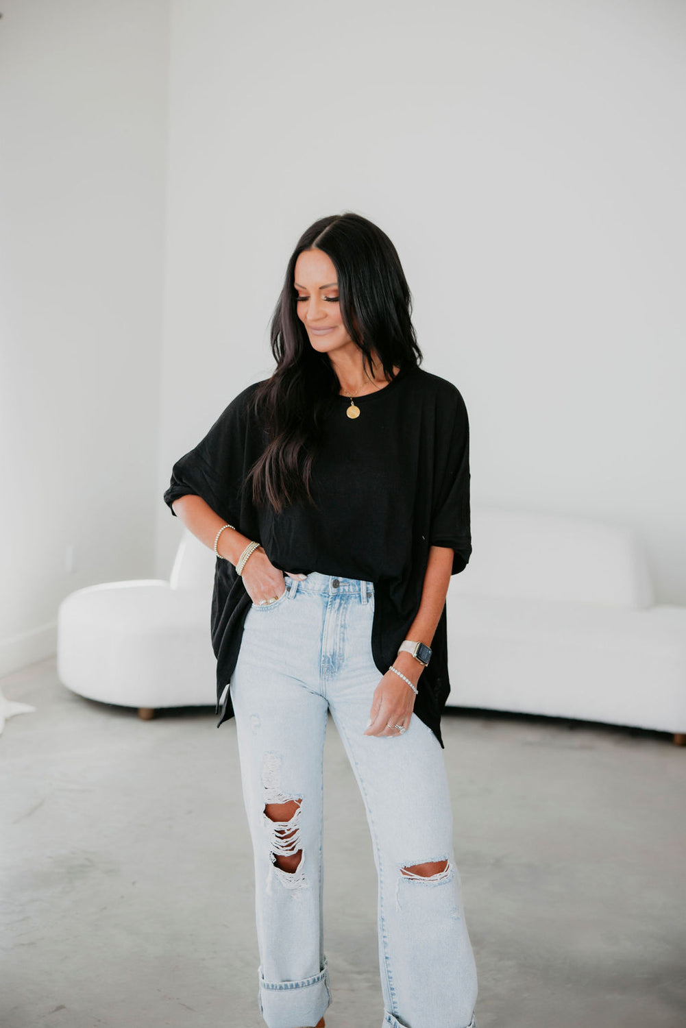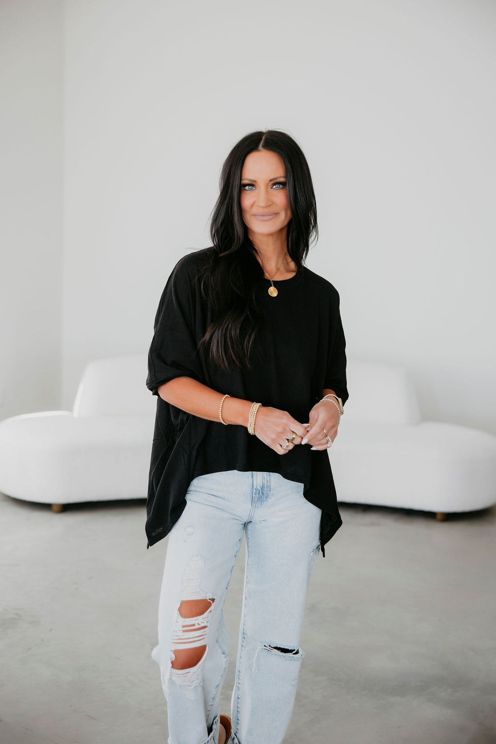 Laurie and Madison are wearing a size small. Fit is oversized.