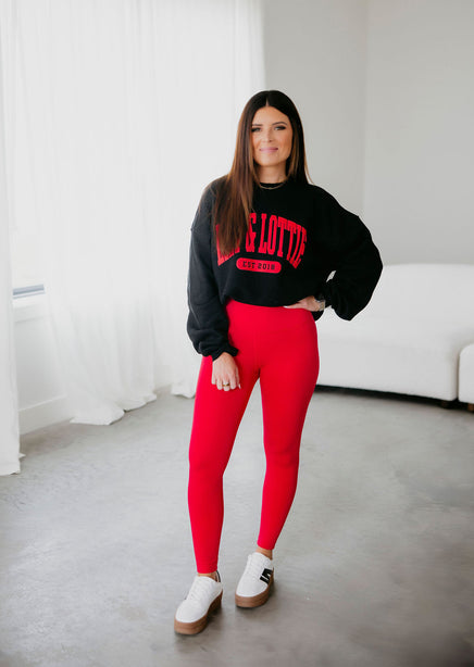 Brittany: Wears a size small and tucked the crew in her bra for a cropped look.