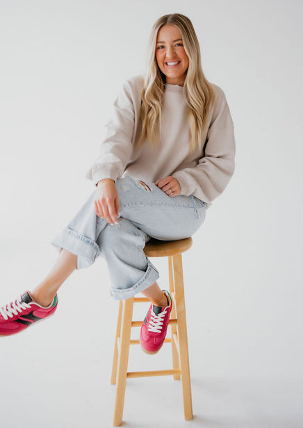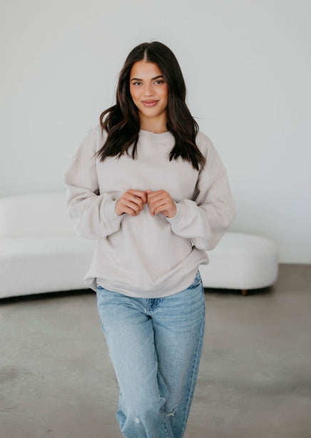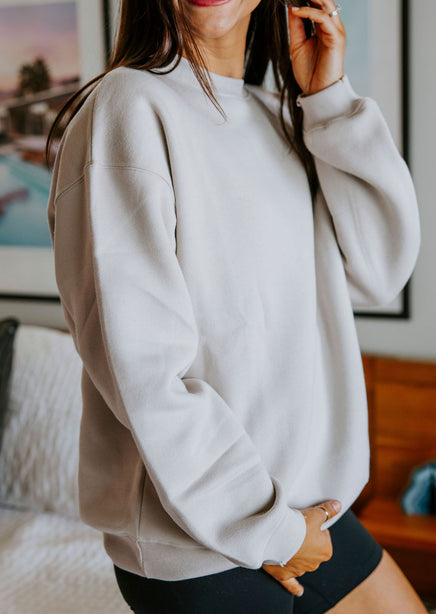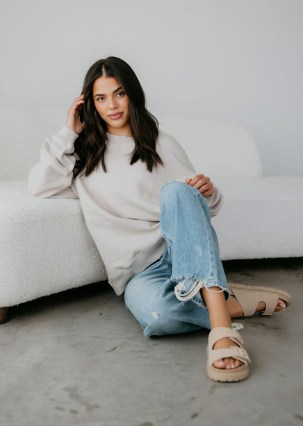 Loa Crew by Lily & Lottie is the perfect way to stay warm and cozy. This oversized crew is crafted from soft fleece and features subtle laser-cut distressing to give it a unique look. With its relaxed fit and classic styling, Loa Crew is the ideal accessory for cold days.