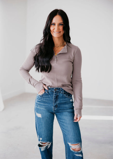 Experience comfort and style with the Local Henley by Lily & Lottie. The waffle knit texture offers a cozy feel while the henley button front adds a touch of sophistication. With long sleeves and a fitted look, this shirt is perfect for any occasion. Fits true to size.