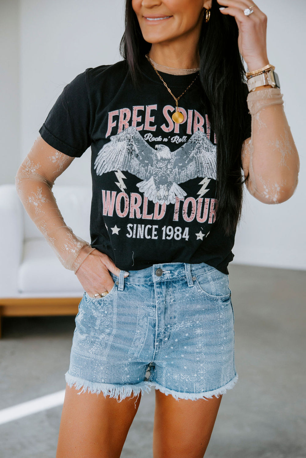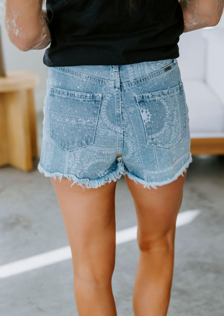 Stand out in these festival-ready shorts! Featuring a fun and unique bandana print in a classic fit. Complete with a frayed bottom and non-stretch cotton fabrication. Pair with a ribbed tank and some fun platform sneakers for an everyday look. Laurie is wearing a size 3.