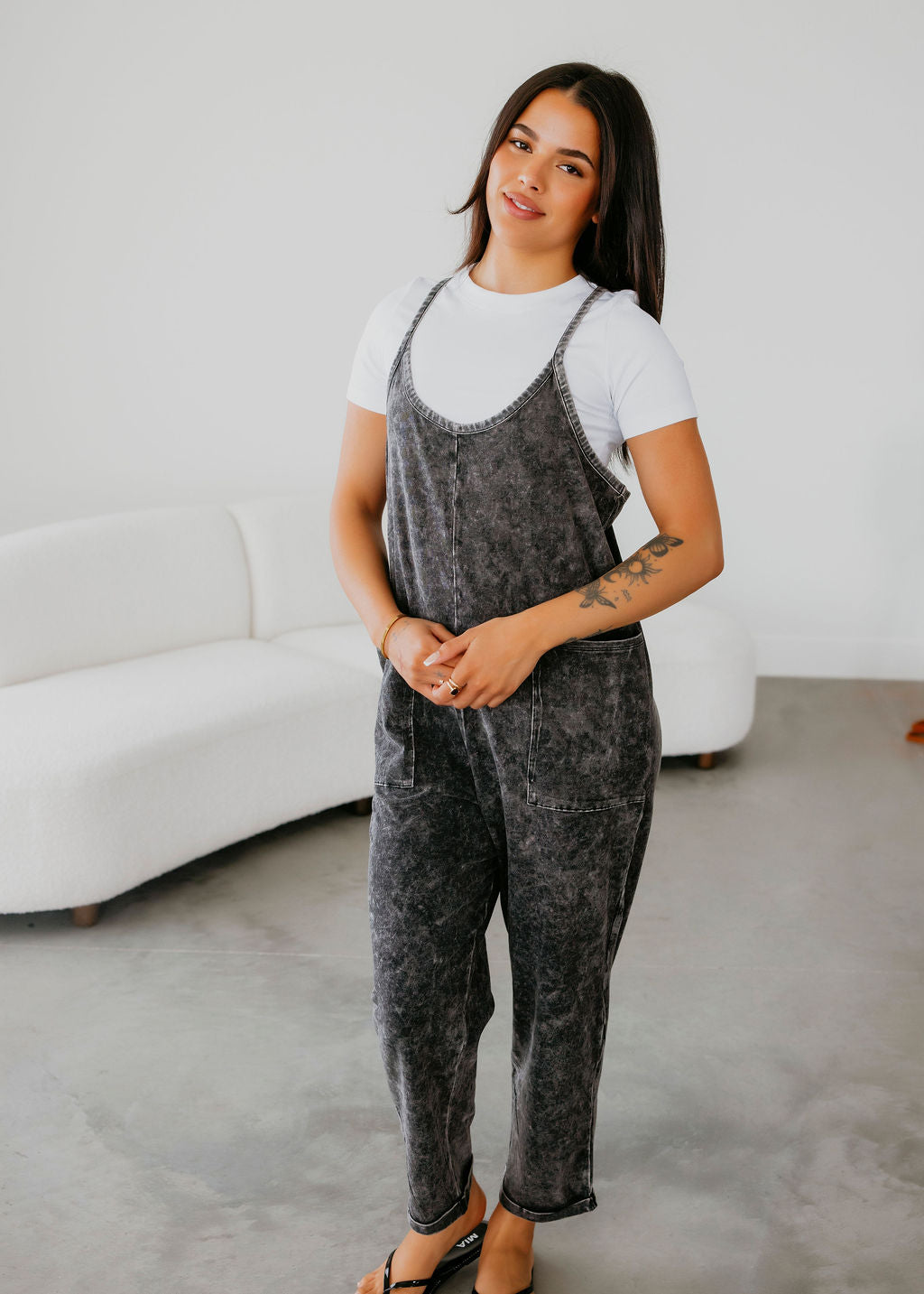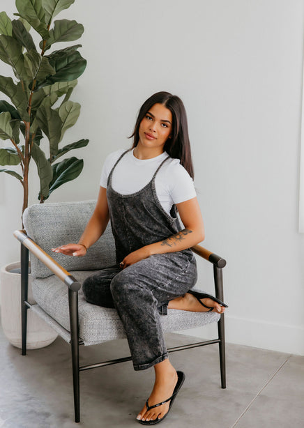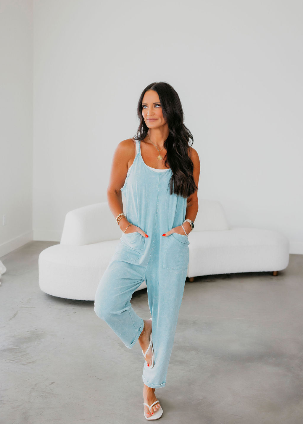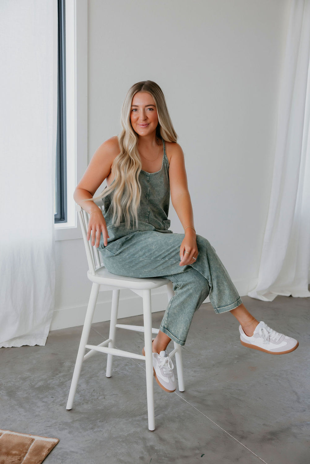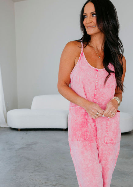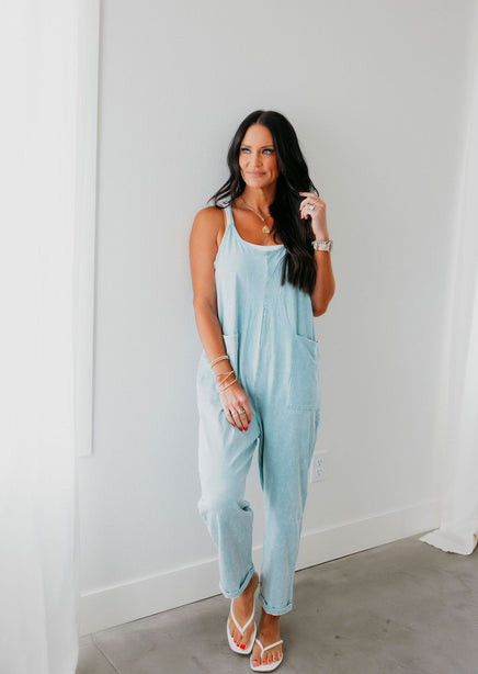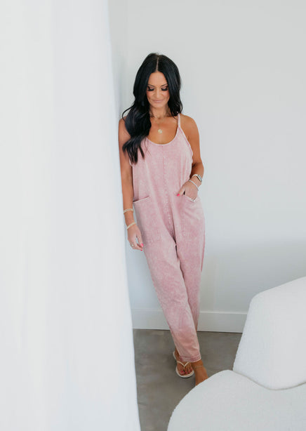 With washed coloring, spaghetti straps and a loose fit, it provides a relaxed and casual look. The V-neck adds an elegant touch, while the pockets add practicality. Laurie, Nessa and Serenity are wearing a size S-M.