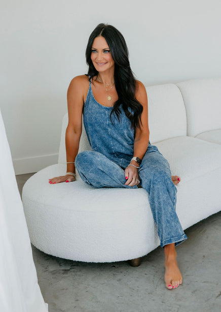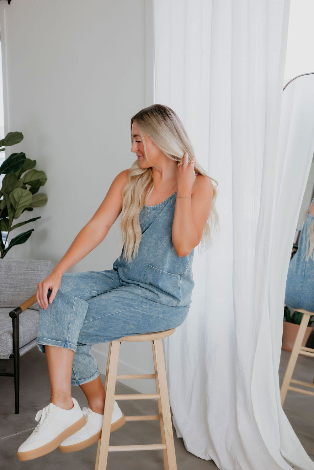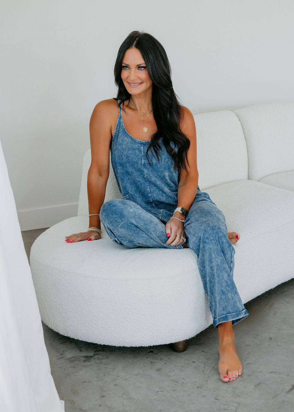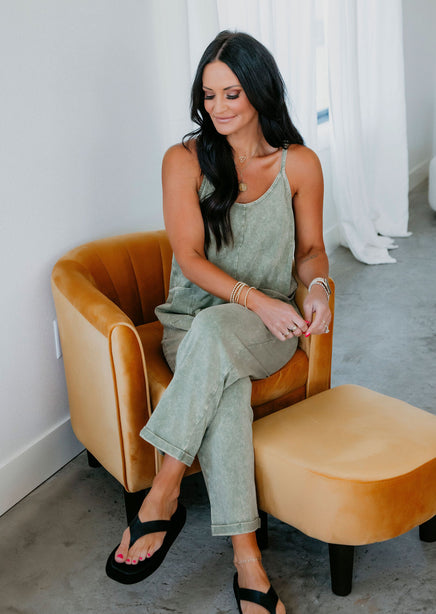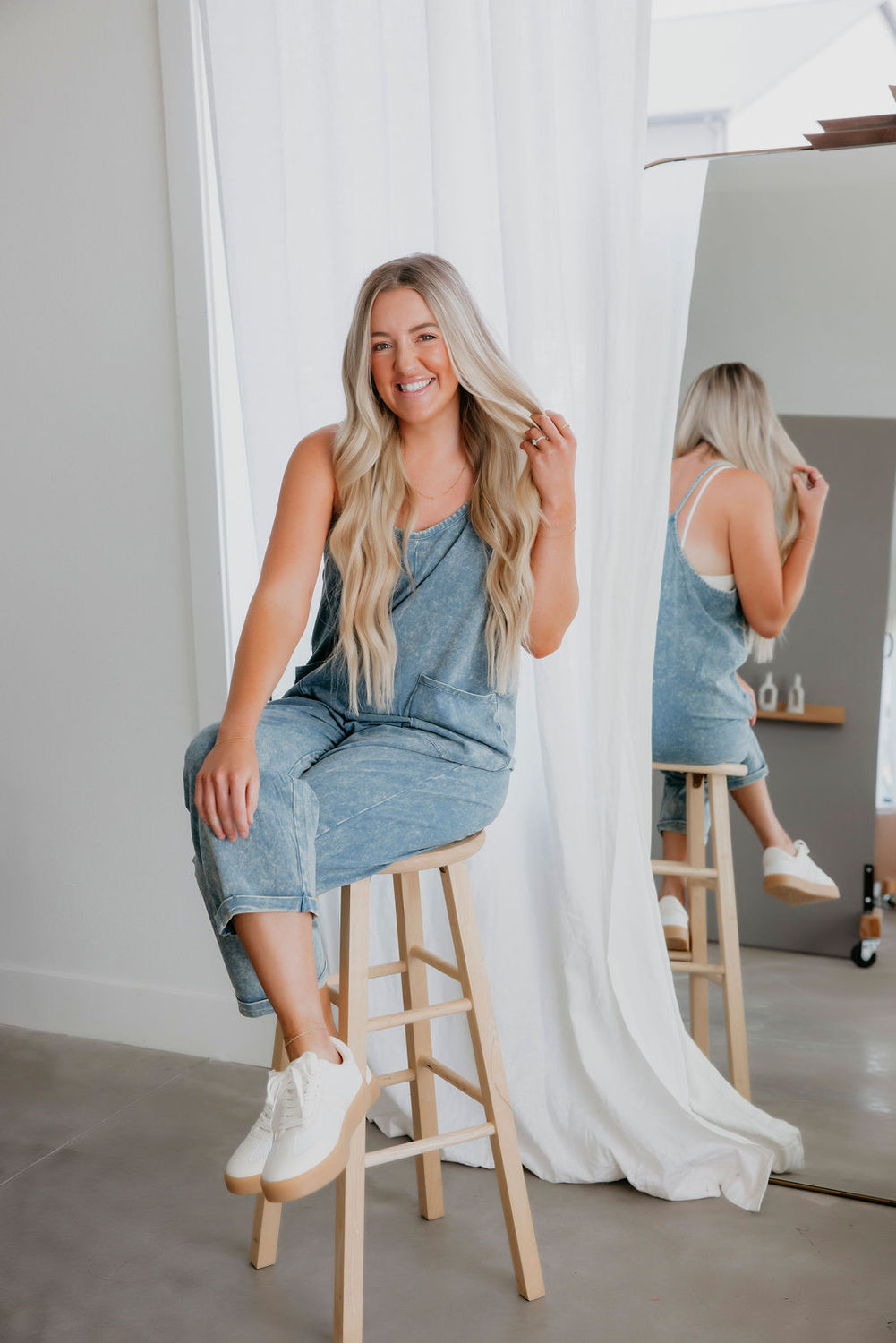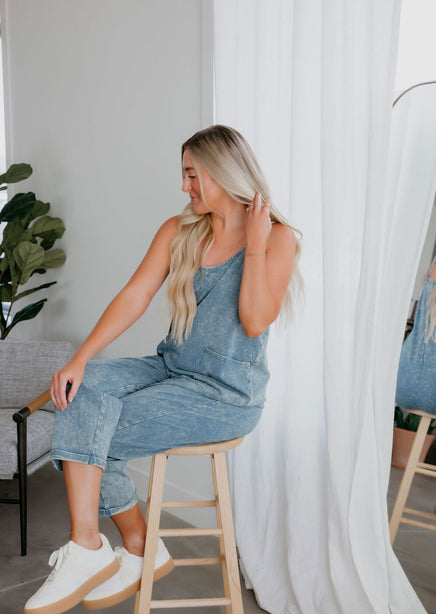 With washed coloring, spaghetti straps and a loose fit, it provides a relaxed and casual look. The V-neck adds an elegant touch, while the pockets add practicality. Laurie, Nessa and Serenity are wearing a size S-M.