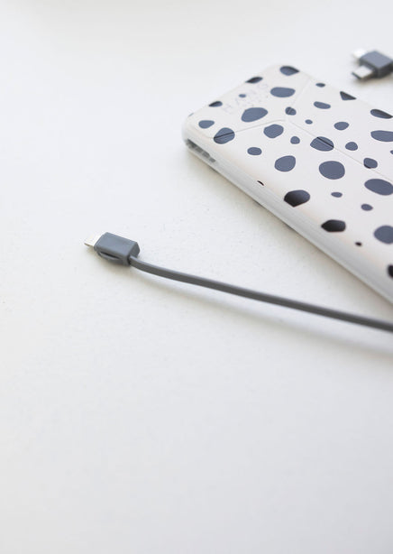 • Built in cables: USB-C, lightning cable, micro-USB.