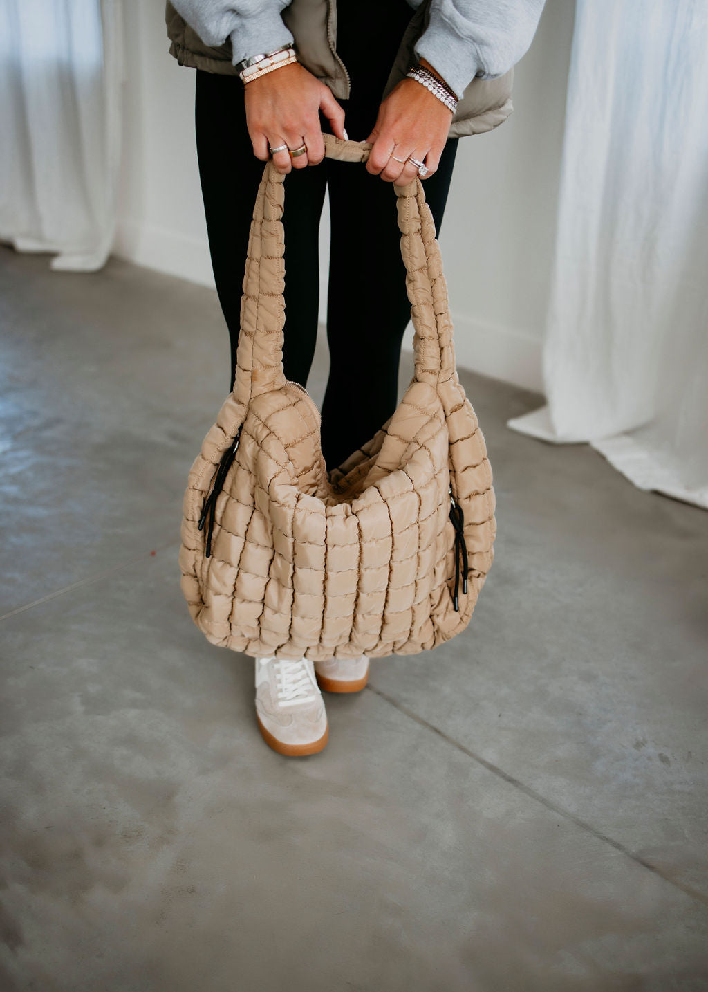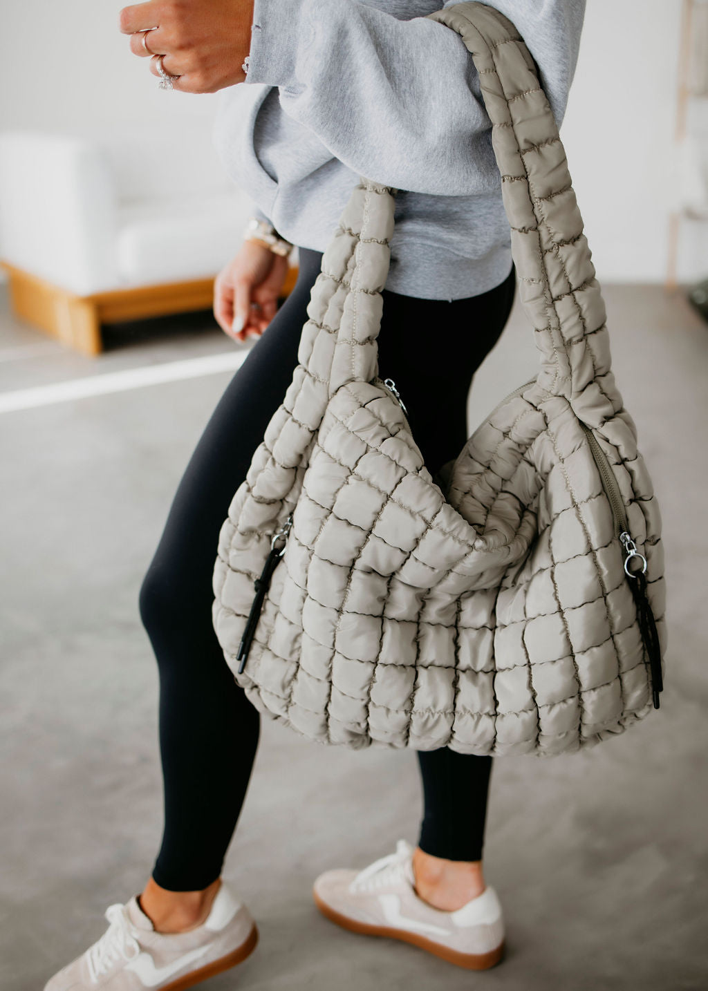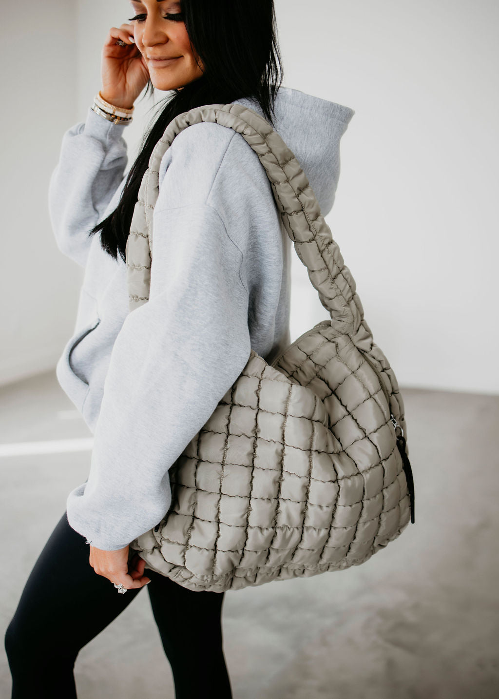 The Quilted Carryall Bag is expertly crafted with premium quality materials. Its oversized design allows for a spacious interior, with multiple zippered pockets for all your essentials. The comfortable shoulder strap and secure top zipper closure make it perfect for all-day wear. Plus, the water resistant exterior adds extra protection.