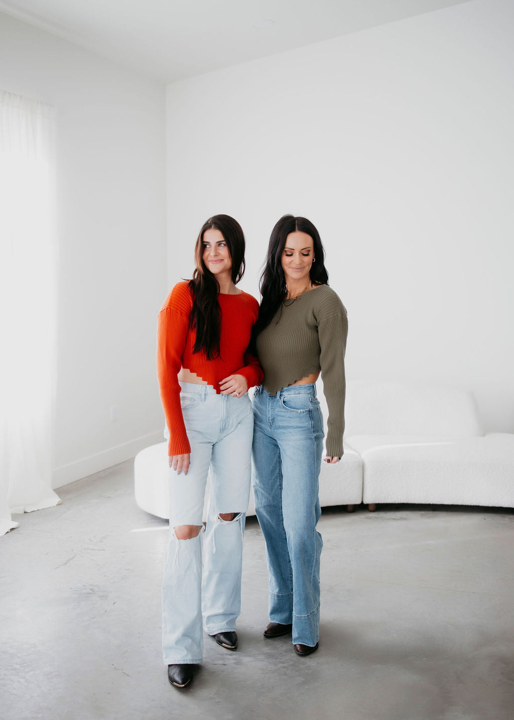 Laurie and Madison are wearing a size small. Loghin is wearing a size XL.