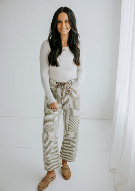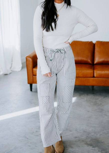 Ronnie Striped Twill Barrel Pants
