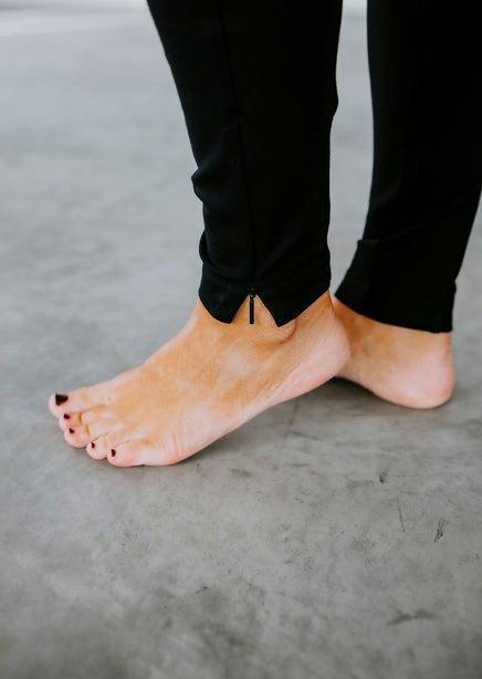 - Zippers at ankle