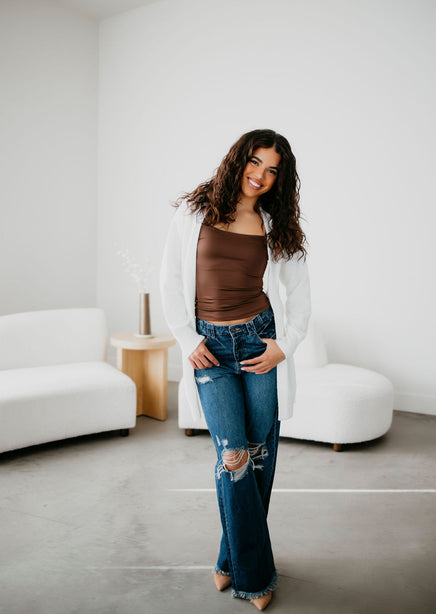 The Sully Cardigan by Lily & Lottie is the perfect addition to your wardrobe. This mid-length cardigan features an open front and long sleeves, making it easy to layer over any outfit. Stay warm and chic with this stylish cardigan.